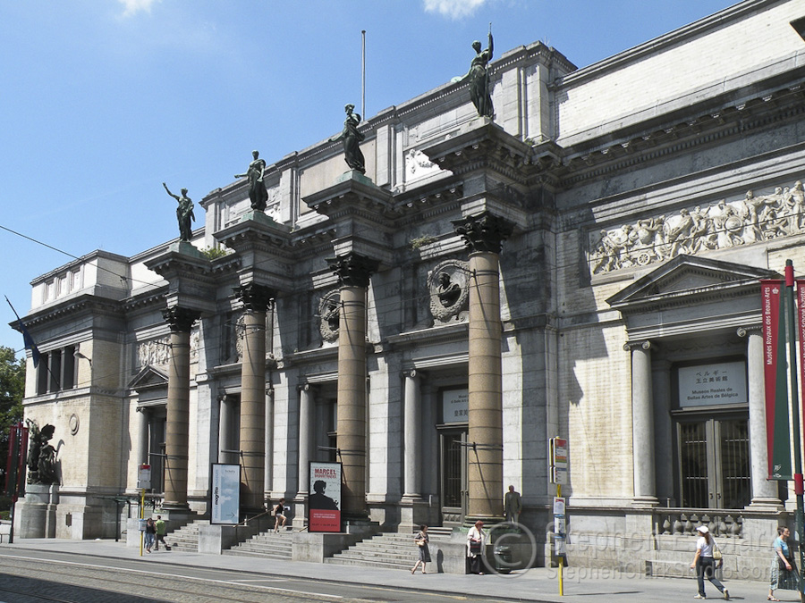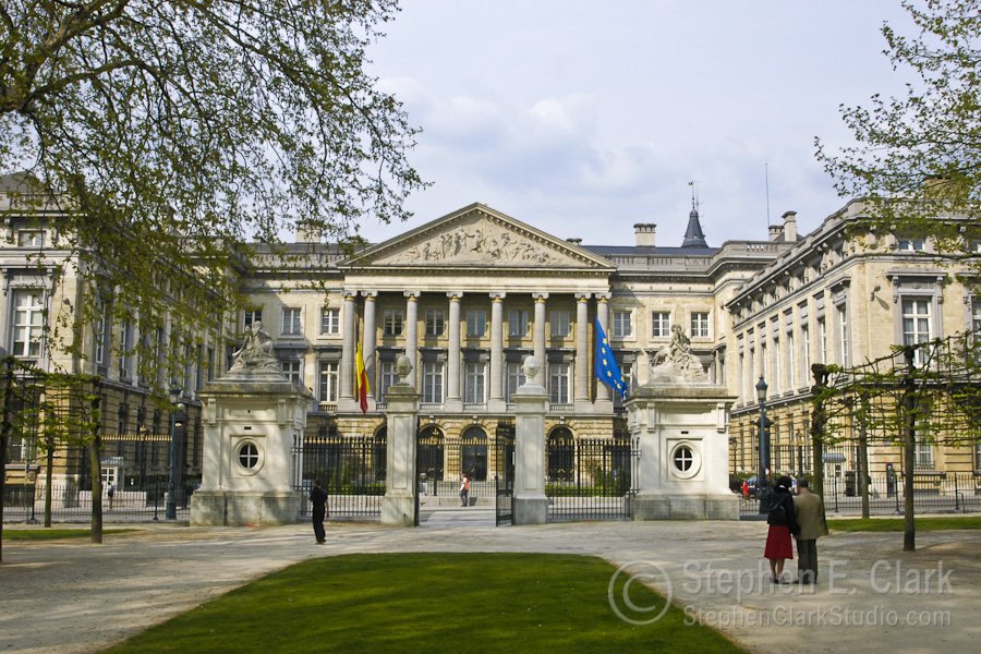 A short walk from the Central Train Station to the west, to the "Upper Town", takes one to the Royal Quarter: the Parc de Bruxelles, the Palais Royal (official home of the Belgium royal family), the Palais de la Nation (home of the national parliment), the fine art museum and other spectacular 18th and 19th century neo-classical buildings. From left to right are the Palais Royal with its flag flying, indicating that the sovereign is in residence, the Palais Royal seen through the trees of Brussels Park, the Palais de la Nation seen in the opposite direction through Brussels Park, a closer view of the Palais de la Nation, and the Musées Royaux des Beaux-Arts that opens onto the Place Royale. We spent a lot of time in the Musées Royaux des Beaux-Arts, which contains both ancient (defined as 15th to 18th centuries) and modern (19th century to the present) art, but unfortunately photography wasn't allowed inside so I have no pictures of the masterpieces we saw.
