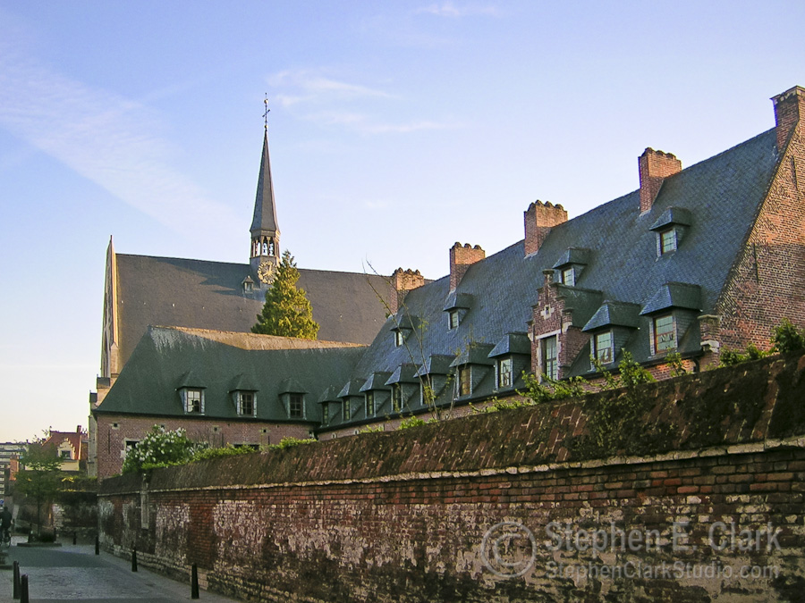 Ancient medieval cobblestone streets opened up behind the Begijnhof Congreshotel and led through the Groot Begijnhof (Great Beguinage) into the center of Leuven. We walked this way each morning and evening to the train station as we went on our daily adventures.