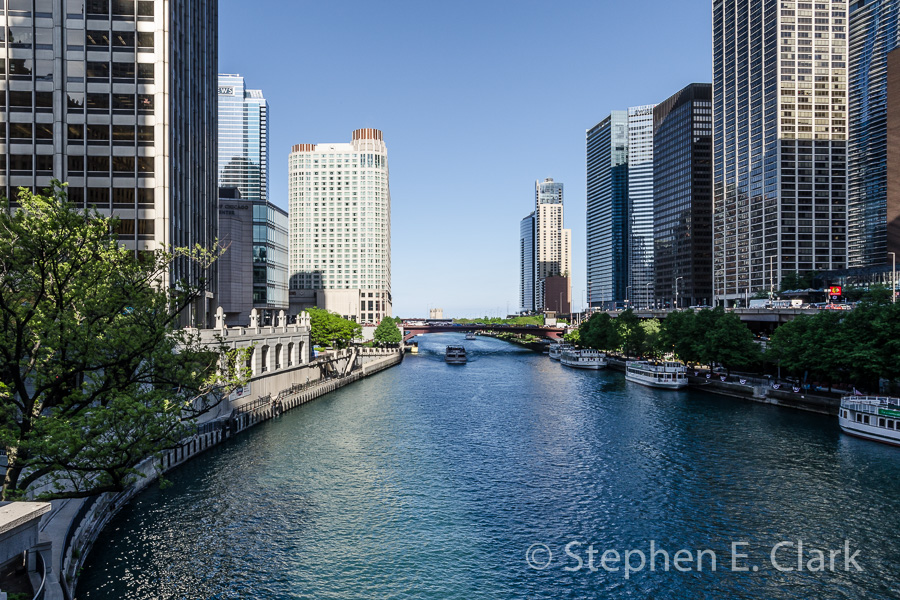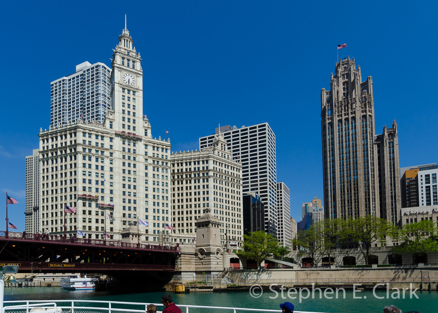 Chicago Architecture River Cruise (Chicago Architecture Foundation): We took a 90 minute river cruise of Chicago that included some Chicago history, but mostly focused on the city's spectacular architecture along the Chicago River. Though several early skyscapers of the late 19th and early 20th centuries could be seen around the Michigan Ave Bridge and at the confluence of the North and South Branches of the Chicago River, most prominent were the post-modern skyscrapers of the late 20th, early 21st-centuries. Also, notably, unlike our previous tour, this day was mild and clear. The tour began at the Michigan Ave bridge, traveled up the North Branch of the Chicago River, down the South Branch, and headed out into Chicago Harbor before returning to the dock.