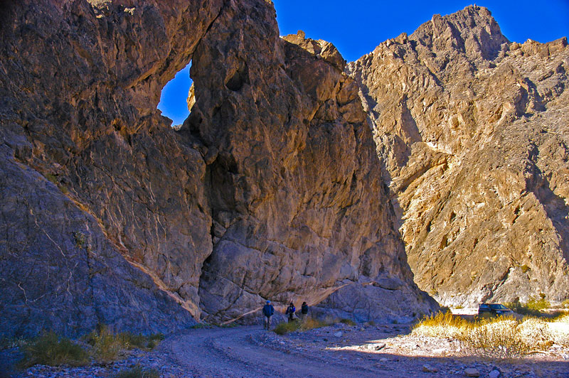 Echo Canyon: Later that morning, we drove to Echo Canyon, located not far from Zabriskie Point just off Highway 190, in the Funeral Mountains of the Armagosa Range. Here our our friends' 4-wheel drive vehicle enters the canyon. Though 4-wheel drive was not a requirement for most of the places we visited, it definitely conferred greater confidence.