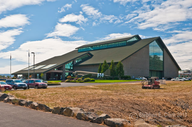 Perhaps McMinnville's greatest claim to fame is the Evergreen Aviation and Space Museum (http://sprucegoose.org/) where the one and only Spruce Goose is housed. The main entrance is to the left. The Space Museum is in a separate building on the far side of the parking lot out of site ot the left.