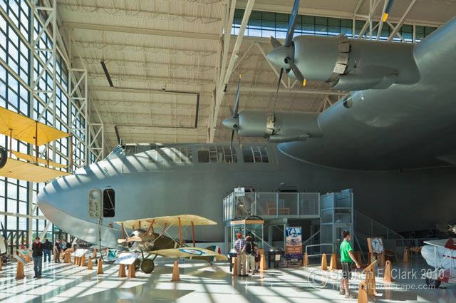 Just inside the Aviation Museum building, the Spruce Goose clearly dominates the inside. That's a Douglas DC-3A towards the left parked under the left wing of the Spurce Goose.
