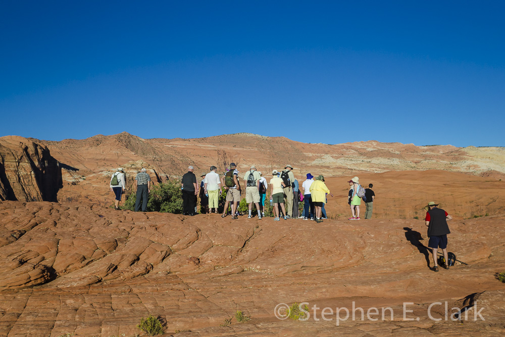 Our Road Scholar program began with a visit to Snow Canyon State Park, located just north of town, for a warm up hike and an introduction to the local geology, and the Dinosaur Discovery Site at Johnson Farm, located in the south-east side of Saint George, where well preserved dinosaur tracks and fossils were discovered in 2000. The next day we drove to Zion National Park where we hiked a couple of more challenging trails before returning to the College Inn in the evening. We then drove to Bryce Canyon National Park for a day of hiking and then drove on to spend the night in Kanab, Utah. Kanab is a sad little town, but was well located for our next destination, the North Rim of the Grand Canyon which we visited the next day. While driving to Bryce Canyon and the Grand Canyon we passed through the western side of the Grand Staircase National Monument. We returned once more to Saint George and ended our most excellent Road Scholar adventure.