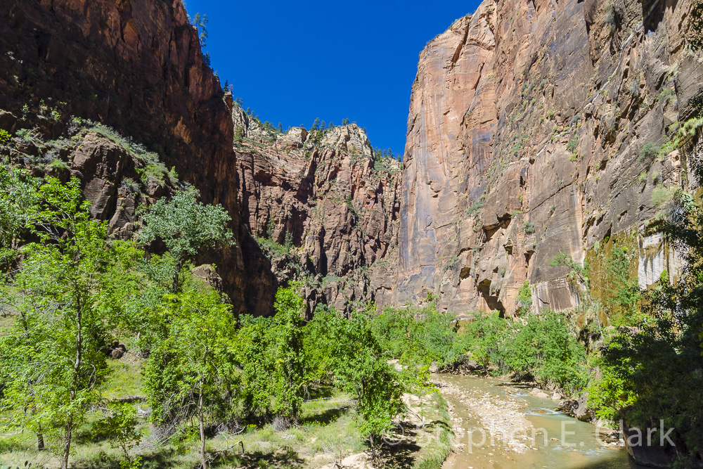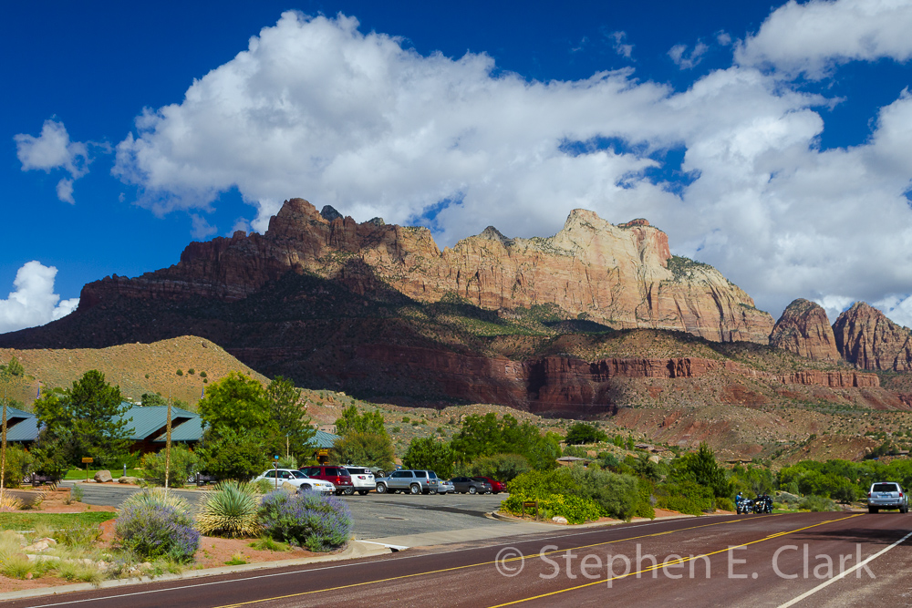 Zion National Park: The main entrance to the park is located about 40 miles to the north-east of St. George on Interstate 15 and State Highway 9. There is another entrance further north off Interstate 15, but we didn't venture there on this trip. We would pass through the park on Highway 9 twice more on our way to Bryce Canyon and Moab. The day we visited Zion National Park it was very crowded and very hot, not a great combination. Nonetheless we managed to get in, disembark, and do a couple of 2-3 hour hikes, first the Emerald Pools Trail and secondly the Riverside Walk to the "Temple of Sinawava". The scenery was extraodinary, so we will have to visit again during the off season, hopefully when it is a bit cooler.