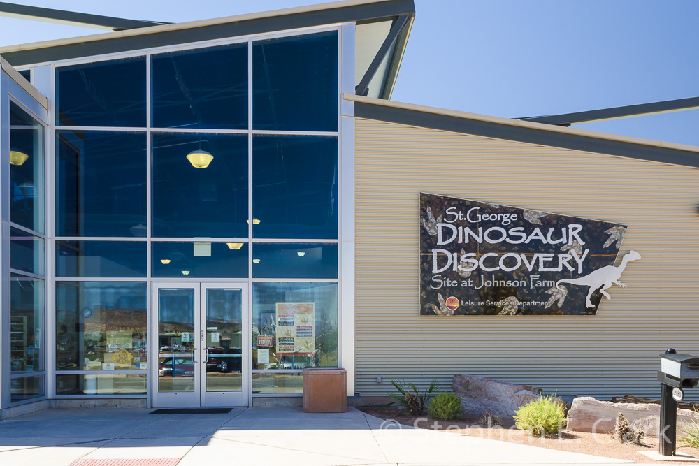Dinosaur Discovery Site at Johnson Farm: This small but very interesting musuem is built over the best preserved dinosaur tracks discovered on Dr. Sheldon Johnson's property in eastern Saint George in 2000. The site dates from the Early Jurassic, about 200 million years ago, and is of a lakeside environment where the dinosaurs left their prints while going about their business. The site was later donated by the Johnsons to the City of Saint George after paleontologists studying the site realized its importance.
