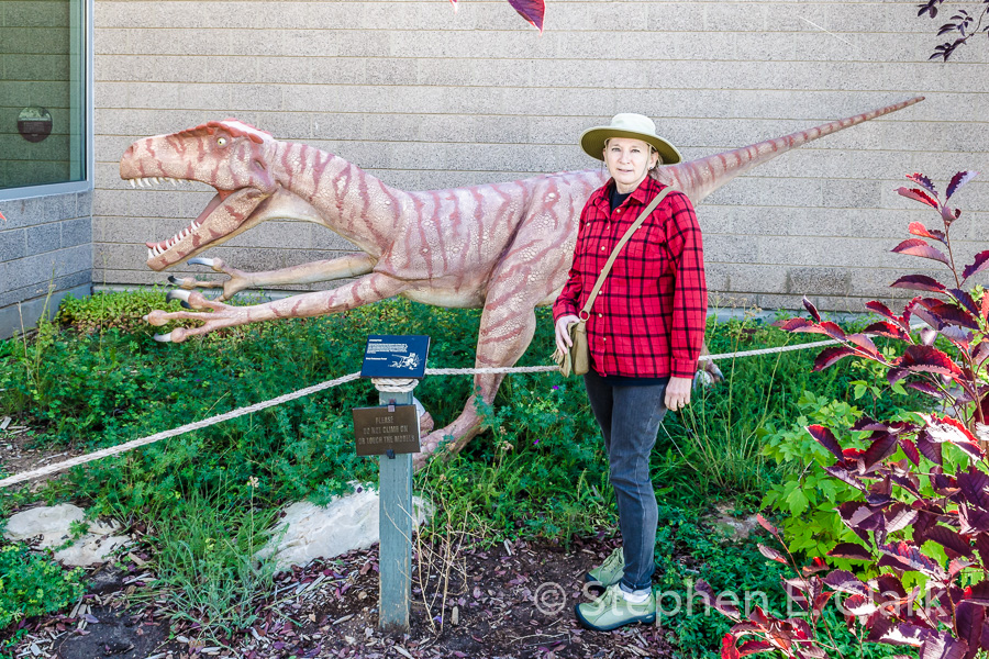 Utah Field House of Natural History Museum, Vernal UT: This museum was our first stop in the Dinosaur Diamond. It was a modest museum with a modest display of dinosaur skeletons on display, but it looked like great fun for children with its Dinosaur Garden that contained many full-size reconstructions of dinosaurs discovered locally. Many of the reconstructions were done in the 1970s prior to the modern understanding of how dinosaurs stood and moved, but the reconstructions nonetheless gave one a good feeling for the size of these animals. In the rotunda of the museum was a magnificent Diplodocus, and in the Jurassic Gallery were several other dinosaur skeletons, including a Stegosaurus and an Allosaurus.
