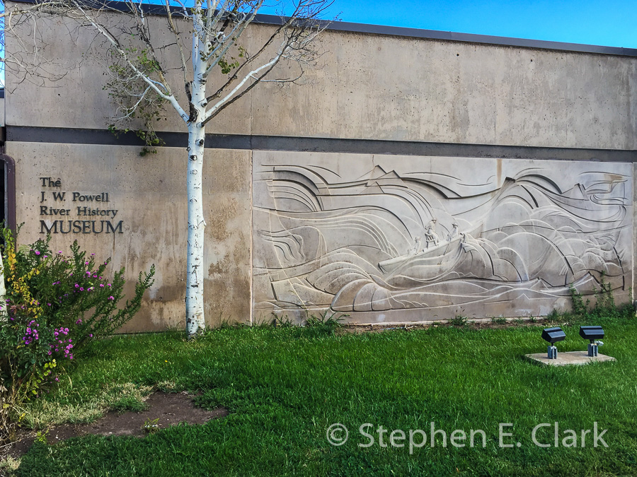 John Wesley Powell River History Museum, Green River UT: This museum is on the banks of the Green River on Interstate 70 and is largely devoted to John Wesley Powell's explorations of the Green and Colorado Rivers in 1869 and 1871-2. Powell was the first to scientifically explore the Grand Canyon and mapped the last unmapped sections of the United States. Why it is located here and not in Green River, Wyoming where the 1869 exploration began underneath the then newly completed intercontinental railroad bridge across the Green River, I don't know. The main floor exhibits are devoted to John Wesley Powell, but to our surprise there are some very interesting paleontological exhibits in the basement.