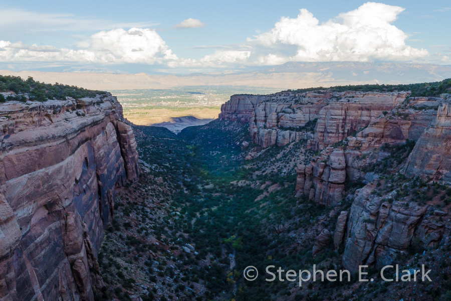 Colorado National Monument is a beautiful but modest-sized park. We arrived about 4:00pm at the visitor center inside the north entrance perhaps 5 miles outside of Fruita, Colorado. The idea was to get the materials we needed on the park so we could plan a visit for the next morning. Instead we were told there would be over 2,000 bicyclists riding through the next morning in some kind of event, so we decided to do the drive right away, and we were glad we did. It took us perhaps an hour to complete the drive to the south entrance and Grand Junction. The park has nice geology and some great views over the Colorado River Valley and the towns of Fruita and Grand Junction, but in our opinion it is nothing special and offers nothing you can't see in the great number of other parks on the Colorado Plateau.