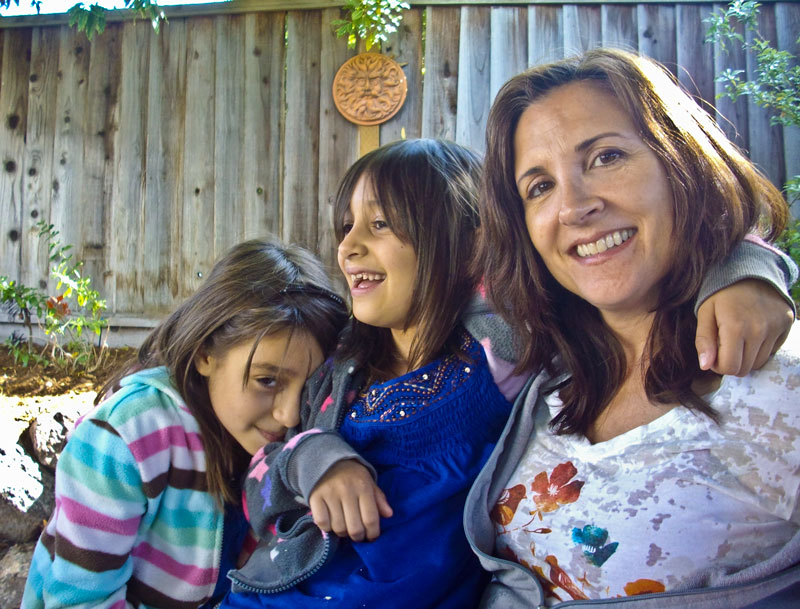 Carrie and her daughters, Chloe and Sophia. (Photo by Barbara. Image processing by me.)