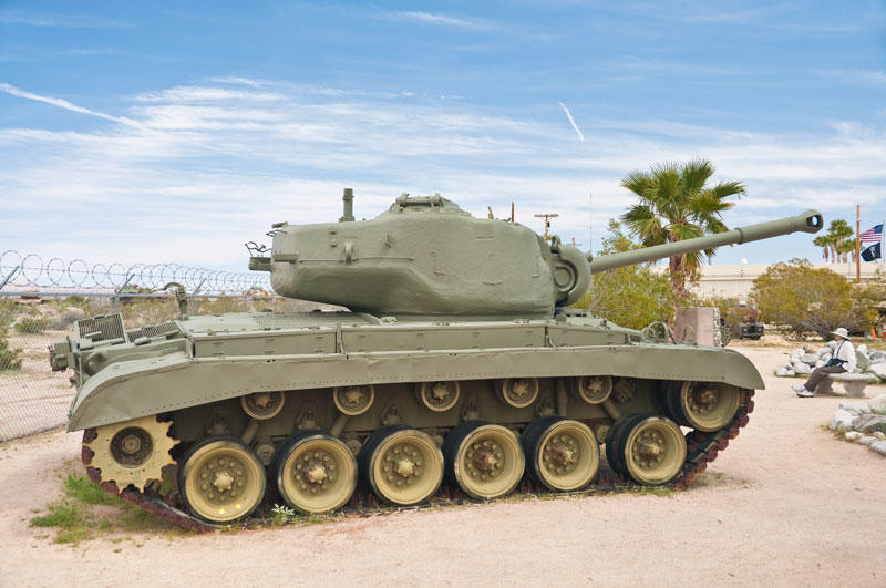 To the left of the museum building is located the tank yard where there appeared to be a score or so of tanks in various states of decay of mainly WWII, Korean War and Vietnam War vintage, i.e. the M4, M26/M46, M47/48 and M60 tanks. Some did appear to be freshly painted. Others looked as if they had been dumped there by the Army National Guard or nearby USMC Air Ground Combat Center after having been stripped of anything useful. Nevertheless, we found it fascinating to wander amongst the old tanks.